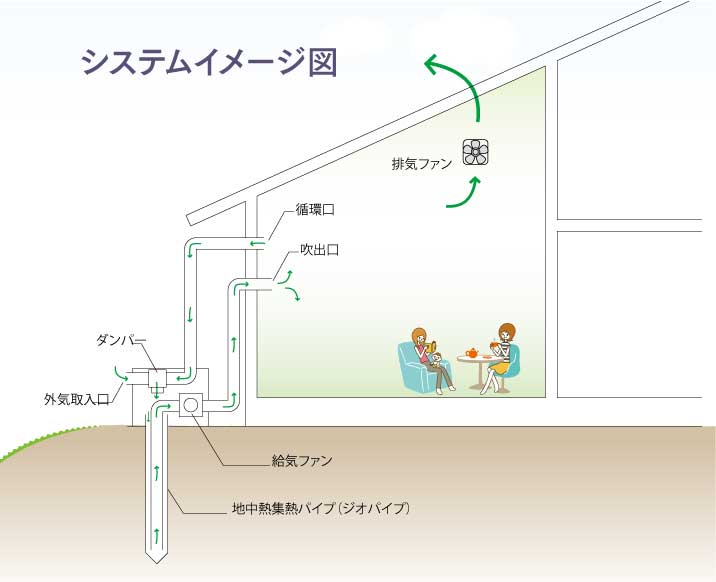 平成26年には、将来世代に継承できる良質な住宅ストックの形成、低炭素社会、循環型社会に寄与するために、地中熱利用換気システム「GEOパワーシステム」や、空気集熱式パッシブソーラーシステム等の機器が導入され、リニューアルオープンされています。