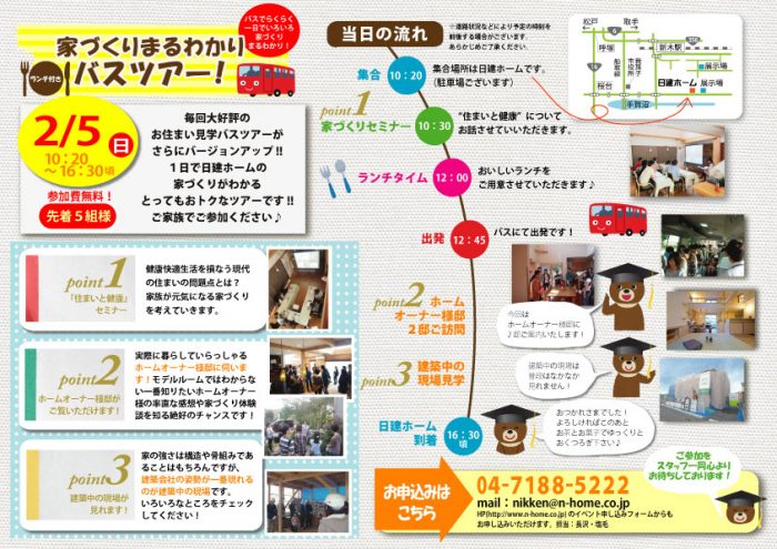毎回大好評のお住まい見学バスツアーがさらにバージョンアップ!!