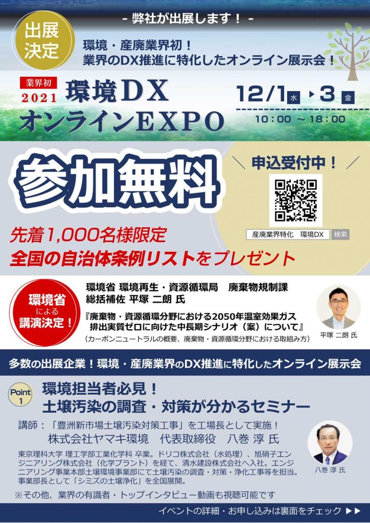 環境・産廃業界のDX推進に特化したオンライン展示会「環境DXオンラインEXPO」に弊社も出展します。