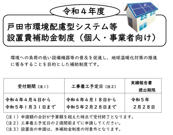 埼玉県戸田市「令和4年度環境配慮型システム等設置費補助金制度」のページ