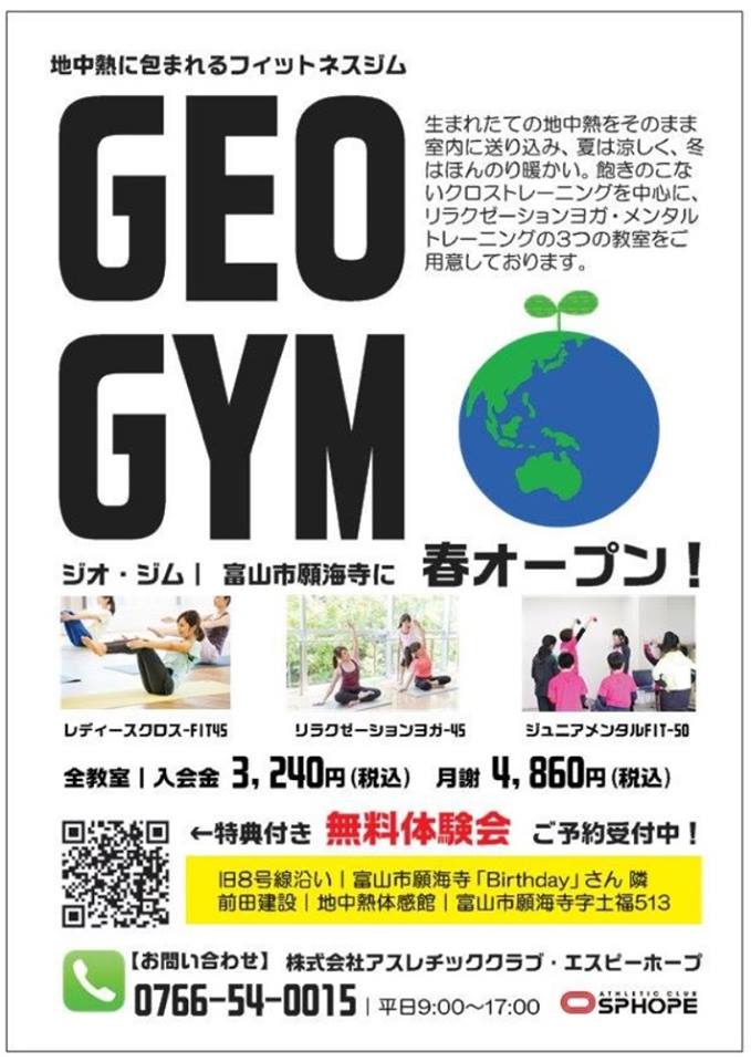 前田建設株式会社(富山市)の地中熱体感館とコラボしたスポーツジムが4月、富山市願海寺にオープンします。